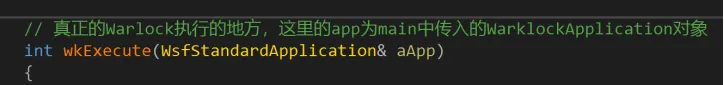 warlock的入口函数为warlock.cpp文件中的wkExecute函数,传入的参数是warlock程序自定义的Application。