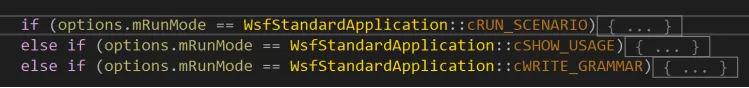 第1条是运行场景仿真;第2条是显示使用提示,即命令行参数说明;第3条是将语法文件写到本地,是给wizard使用的方法。因此这里我们只分析第一条执行过程,并且这里面最重要的代码是StartUp。