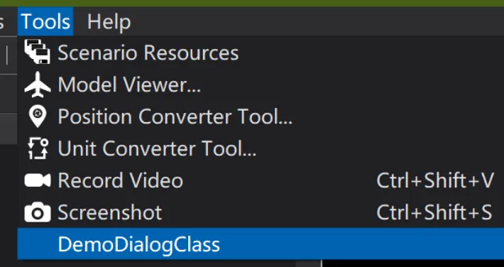 a界面创建与上述一样,就不多讲了。这里AddDialog有两个方法,其中AddDialogToViewMenu是被标记为DEPRECATED的,后续此方法会删除,因此不要使用此方法而是使用AddDialogToToolMenu。wkfEnv的MainWindow根据传入的actionName,在Tools菜单中添加菜单项,如果为空,则默认使用Dialog的类名作为菜单名称显示,所以建议一定要传入一个易懂的名称。