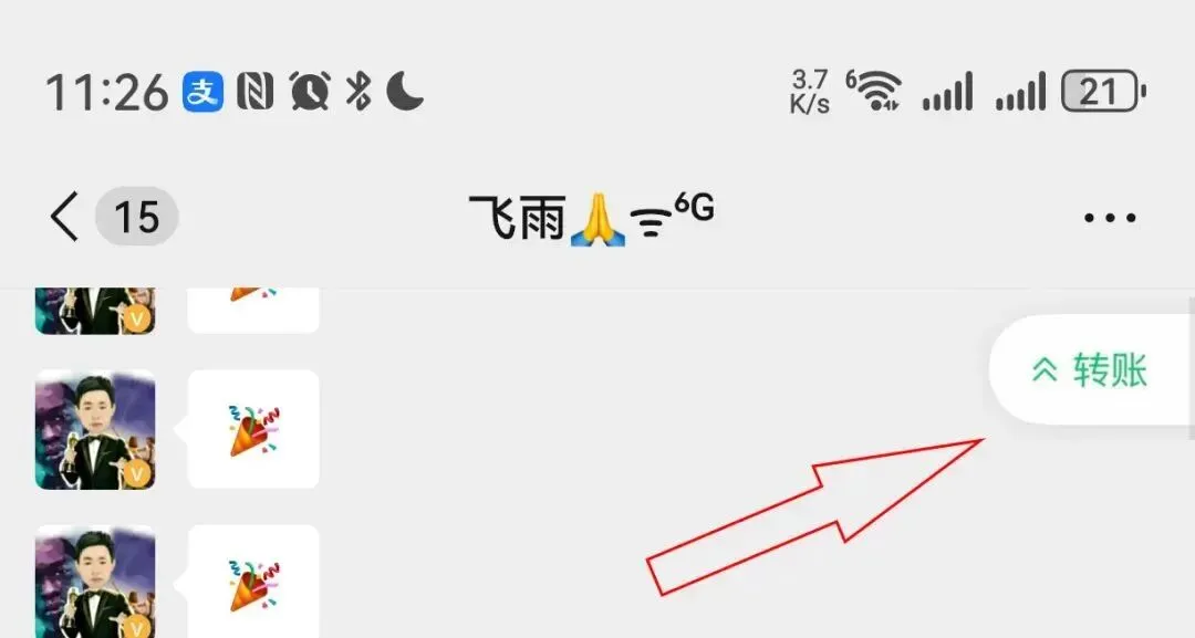新版本在聊天界面中设置了一个悬浮窗的标签进行提醒,点击这个浮窗标签就能快速跳转至红包或者转账的消息位置,再也不用担心错过红包、忘记接收转账,尤其适合消息密集的群聊场景。