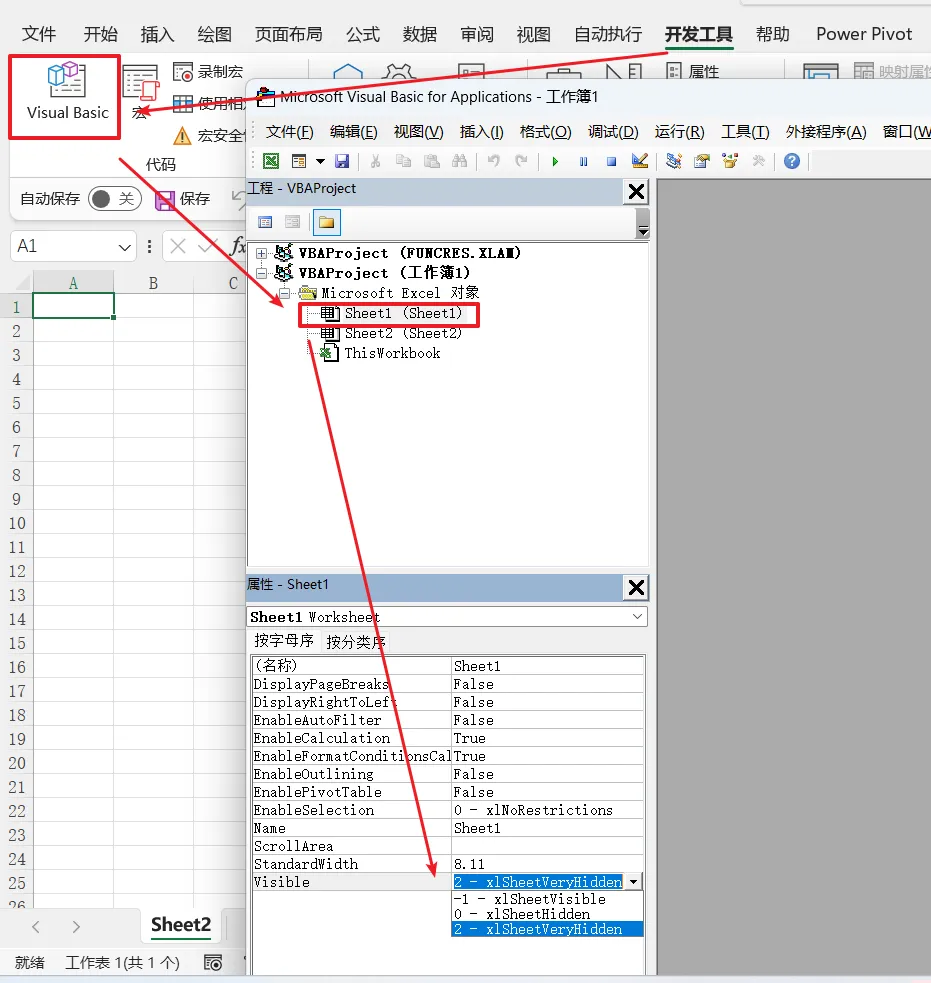 一个更安全的方法是通过Visual Basic Editor(VBE)来设置工作表为“非常隐藏”。首先,确保你已启用开发者选项卡;然后通过VBE选择你的工作表,并在属性窗格中将Visible属性设置为“XL sheet very hidden”。