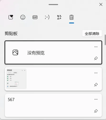 此外,你还可以使用Windows键+V打开Windows剪贴板,固定项目以供将来使用。