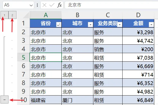 当处理大型电子表格时,反复隐藏和取消隐藏行或列可能会很麻烦。分组功能提供了一个更好的解决方案。你可以选择要分组的行或列,然后在数据标签上点击“分组”。