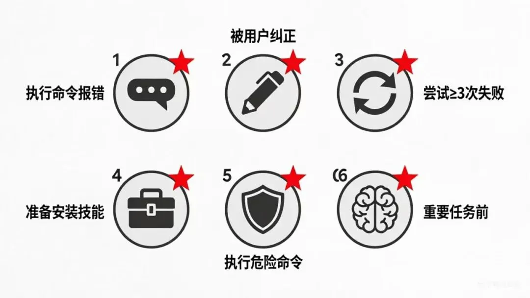 自动触发:遇错自动查、纠正自动记、任务前自动加载 -