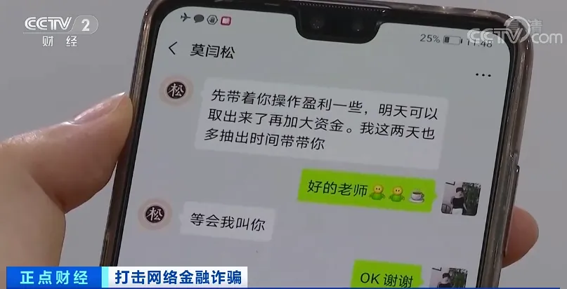 一年前,喜欢炒股的余女士被拉进了一个所谓的基金投资交流群。因为对基金了解甚少,余女士一开始并没有被群里的各类信息迷惑,但是这个群里的“莫老师”主动加了好友,不断向她传授投资经验,分享生活点滴,甚至承诺能免费帮她赚钱,另一方面还有群友表示在这位导师的指导下赚了200万。半年多的时间,余女士对这位“莫老师”慢慢产生了信任,也一步步踏入了陷阱。