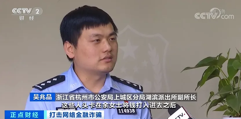 浙江省杭州市公安局上城区分局湖滨派出所副所长 吴兆品:这个就是犯罪嫌疑人设下的精密的陷阱,造成余女士还认为自己的钱款是在基金App内,但是等到犯罪嫌疑人将对应的钱款进行洗钱操作,取现之后,余女士反应过来在基金App里面没有钱款的时候,这时钱已经被犯罪嫌疑人取现取掉了。
