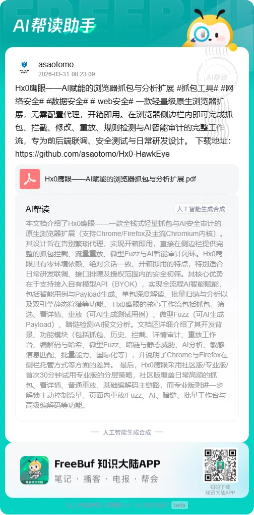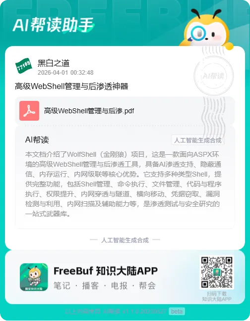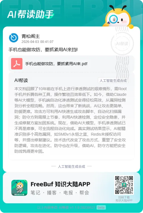 每周PDF资源:手机也能做攻防;AI代理安全;AI赋能的浏览器抓包与分析扩展;高级WebShell管理与后渗