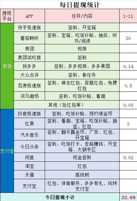 签到、神龙红包(喂龙升级领现金)、答题红包(每天几道题,全对给红包)、免费红包(整点开抢)。这个平台玩法多,每天能多薅1-2元。