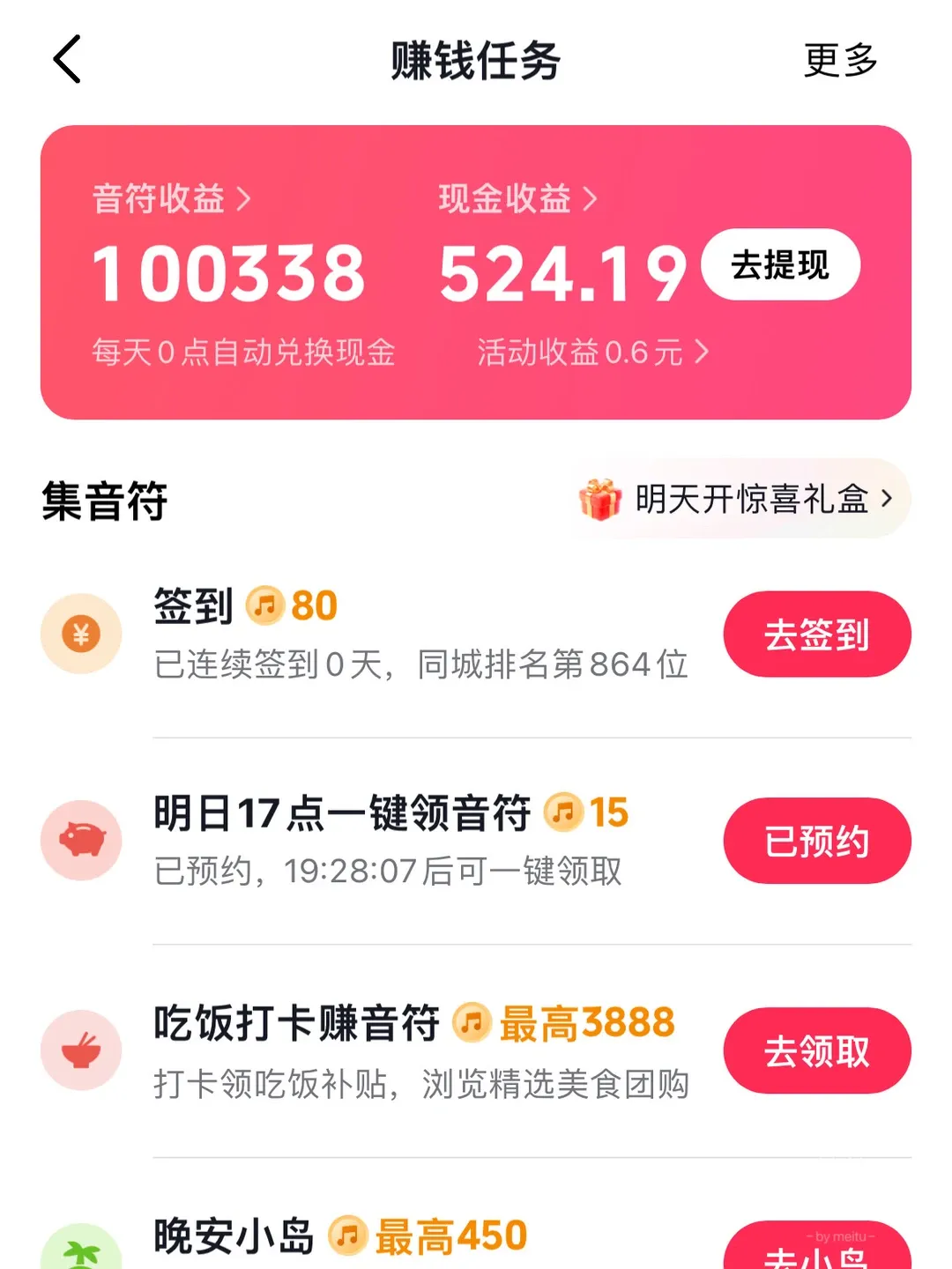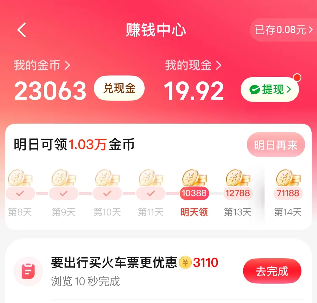 除了必有的签到得金币之外,我们每个APP都还有其他很多可以获取提现途径的活动: