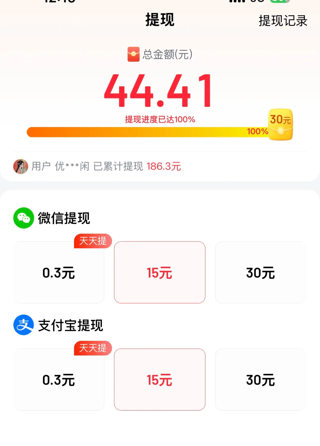 提现门槛低:0.3元就能提,别攒着,随赚随提最踏实。