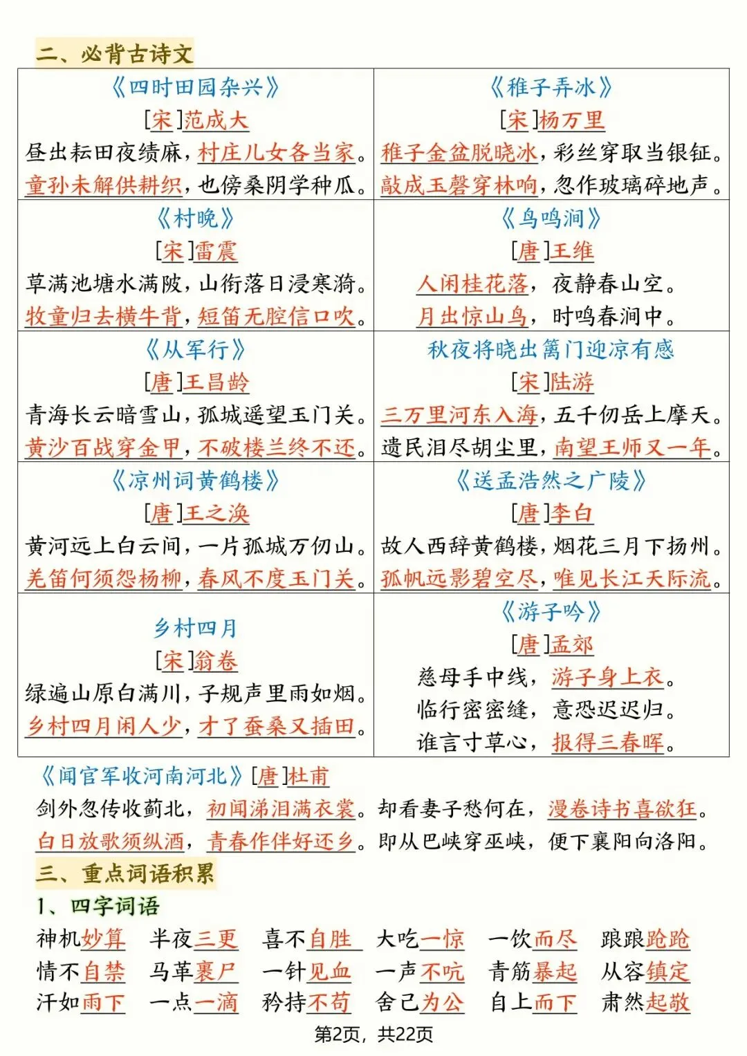 可下载丨26春五年级下册语文全册高频考点总结,电子版可打印