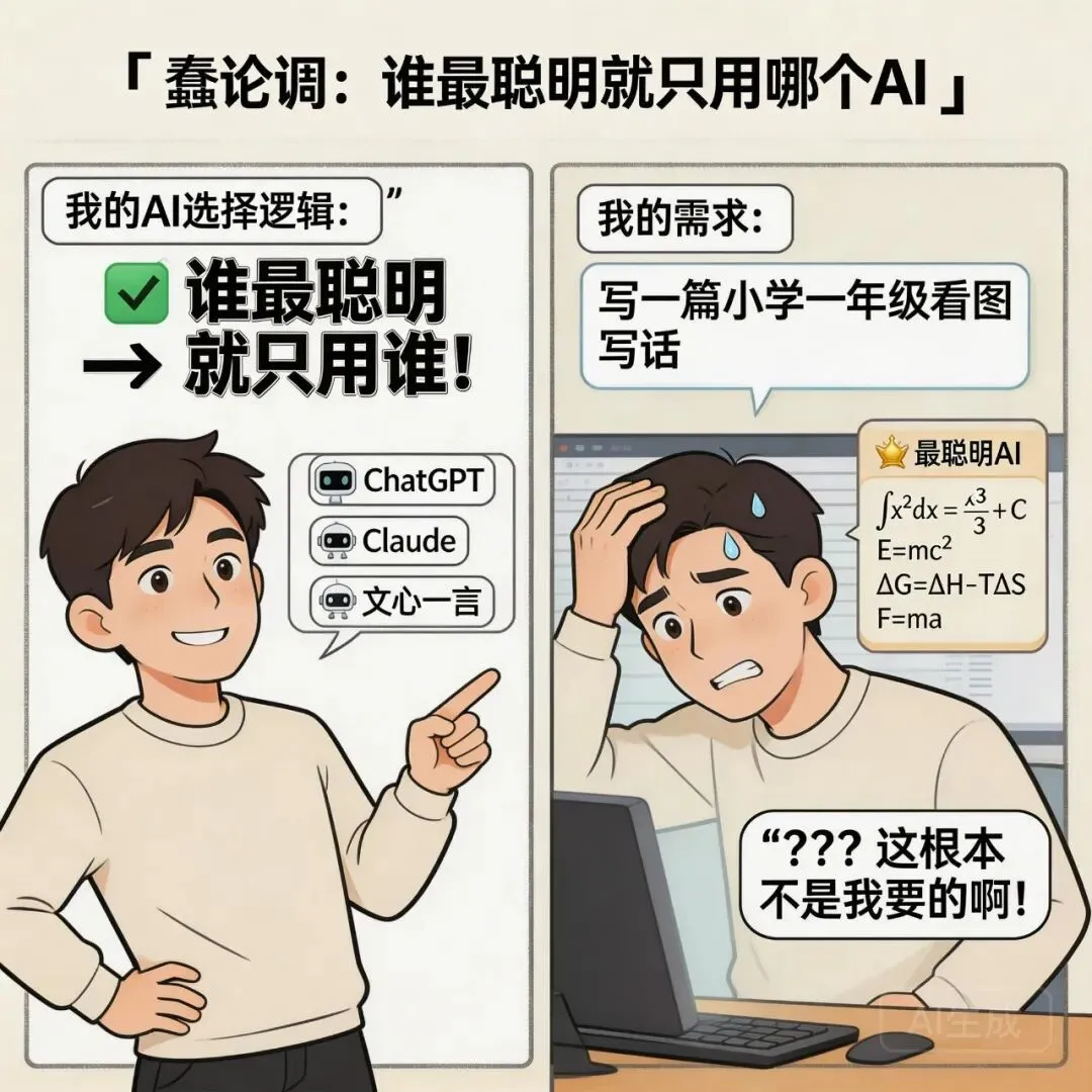 网上有一个特别蠢的论调:哪个AI最聪明,我就只用哪个。