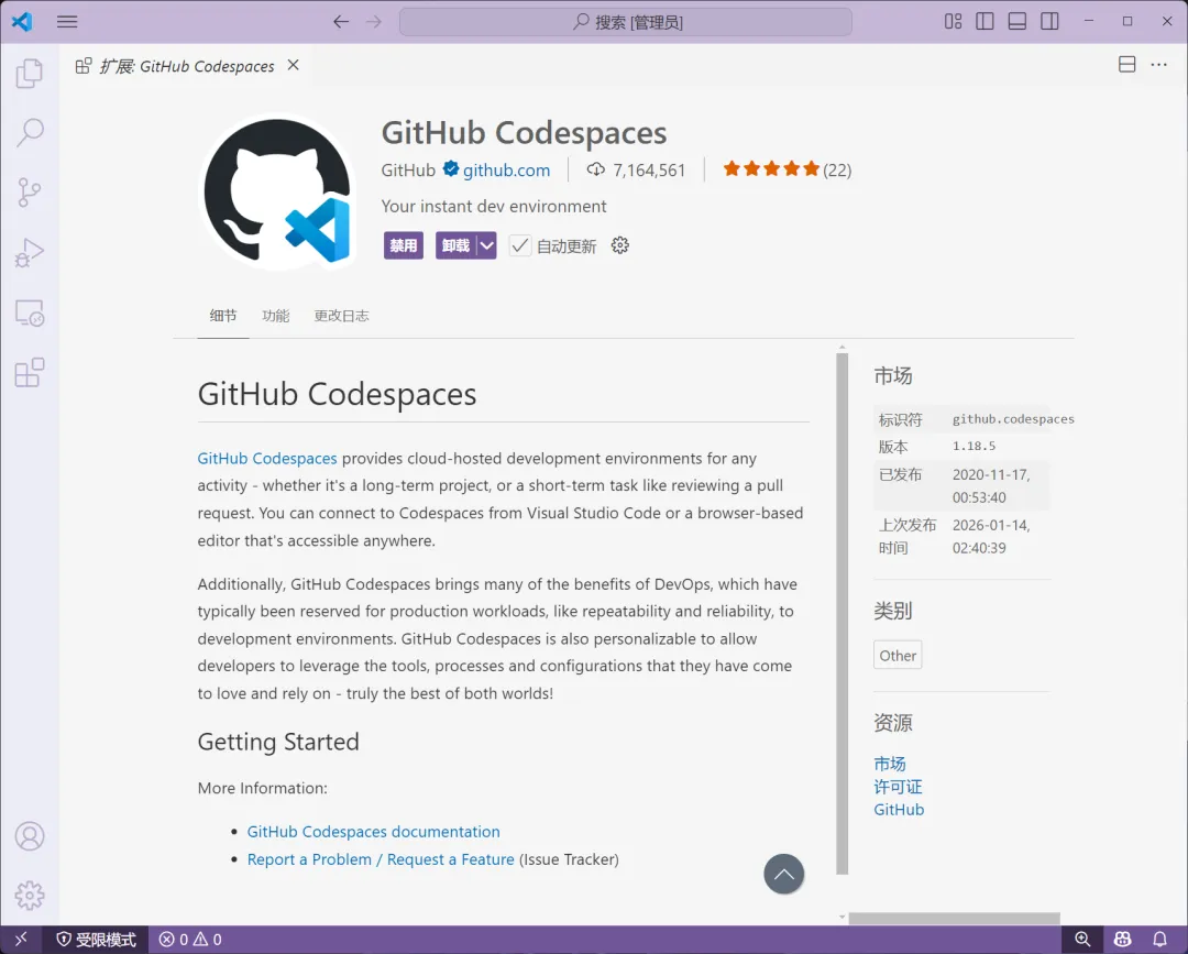 想要使用codespaces非常简单,首先拥有一个github账号。安装vscode最新版。