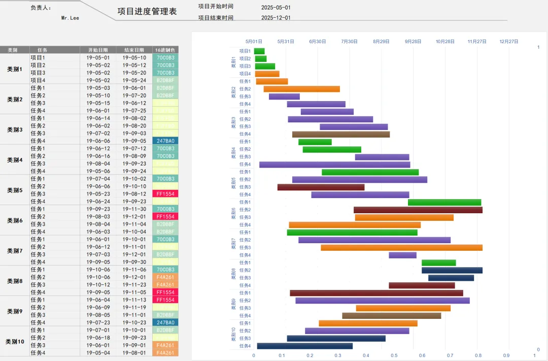 项目进度管理表模板EXCEL表甘特图