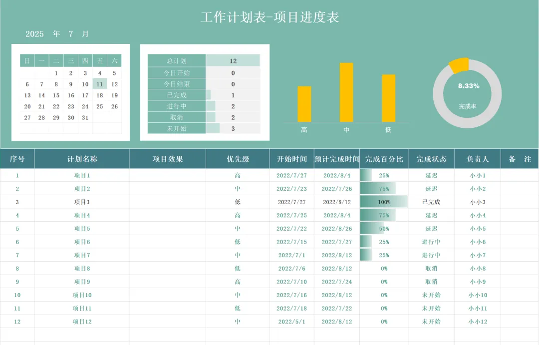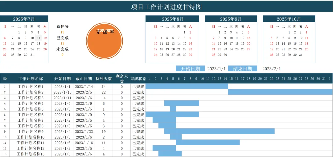 项目进度表工作计划表格项目进度进度表-甘特图
