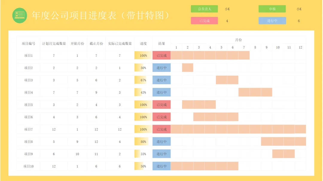 项目进度表工作计划表格年度项目计划进度表-甘特图
