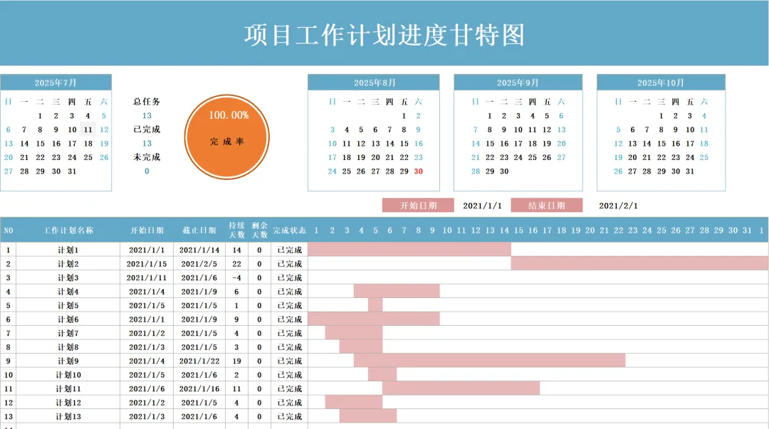 ◆本期分享:项目进度表甘特图模板(16套)