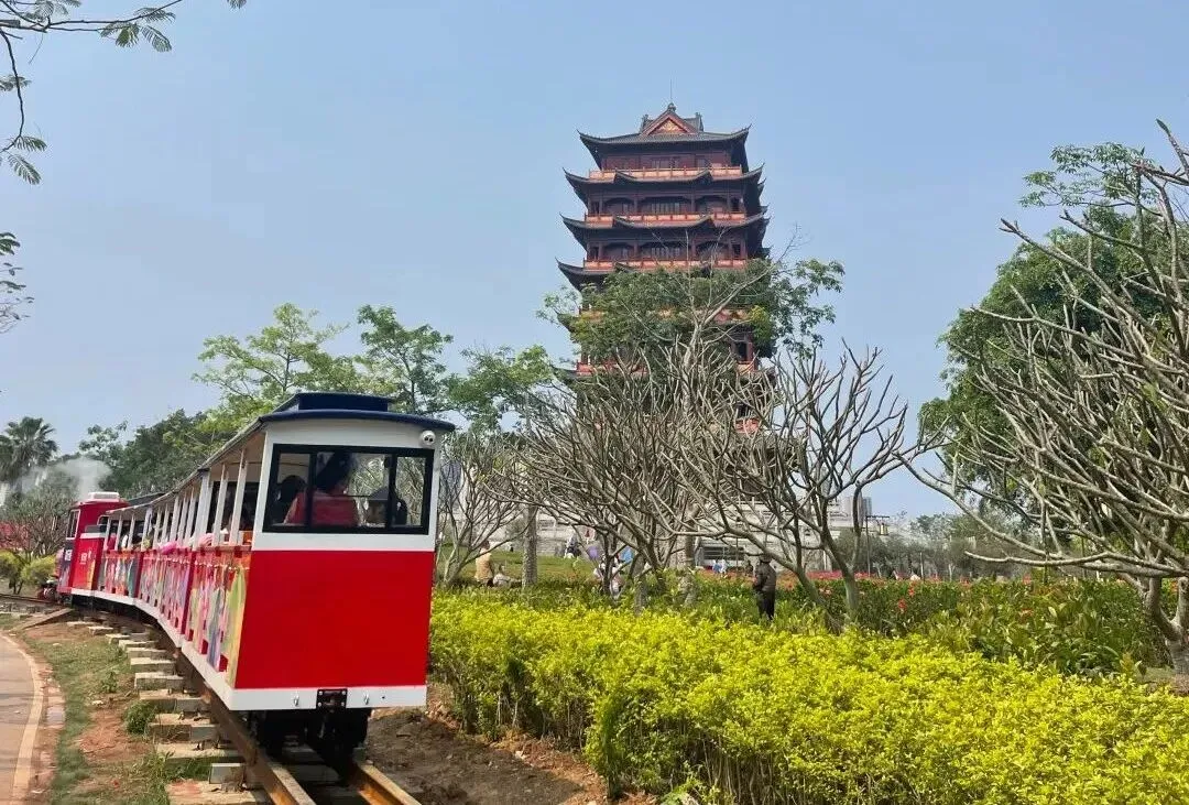 小火车缓缓穿行,穿过春风与花影。The train glides slowly, through wind and flower shadows.轨道延伸向远方,像一段温柔的旅程。Tracks stretch far, like a gentle journey.停下脚步,听风,看花,等时光。Stop, listen to wind, watch flowers, wait for time.简单,即是美好。Simplicity is beauty.✨ ────────────────✨