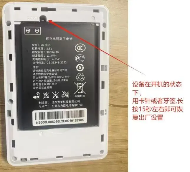 长按“Reset” 按键5秒左右, MiFi将被重新激活并恢复出厂设置。