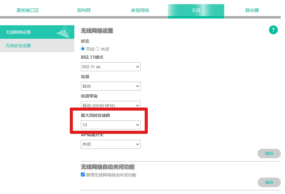 修改最大设备连接数