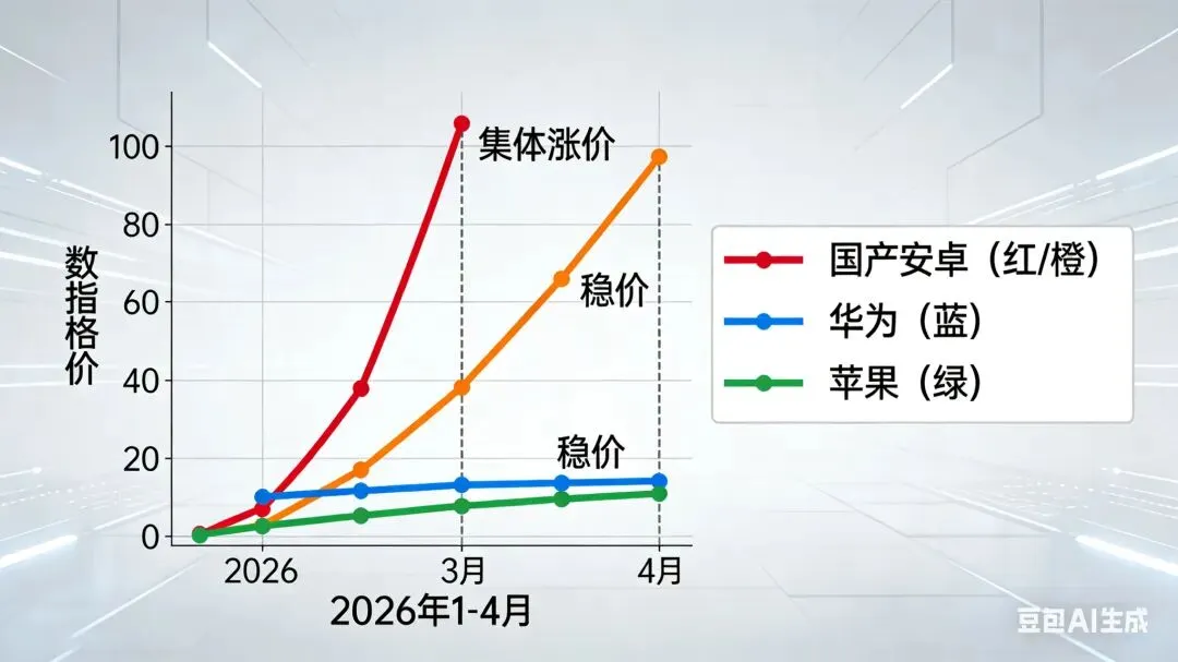 2026年3月起,国内安卓手机(小米、OPPO、vivo、荣耀等)集体涨价,但华为、苹果官方售价保持稳定。