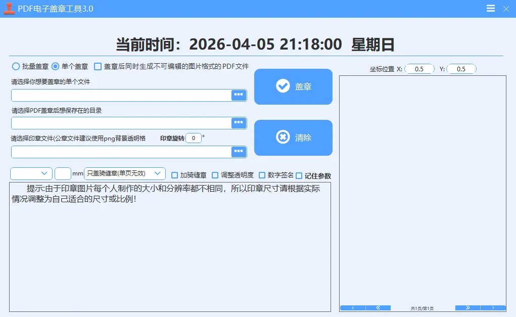 支持手动输入坐标(默认0.5, 0.5),让印章精准落在你想要的位置,告别“歪七扭八”!