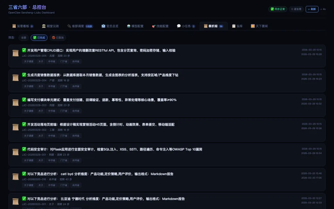 改造完成后,三省六部系统已经从“能跑”进化到“可用”。以下是当前系统的完整能力全景。