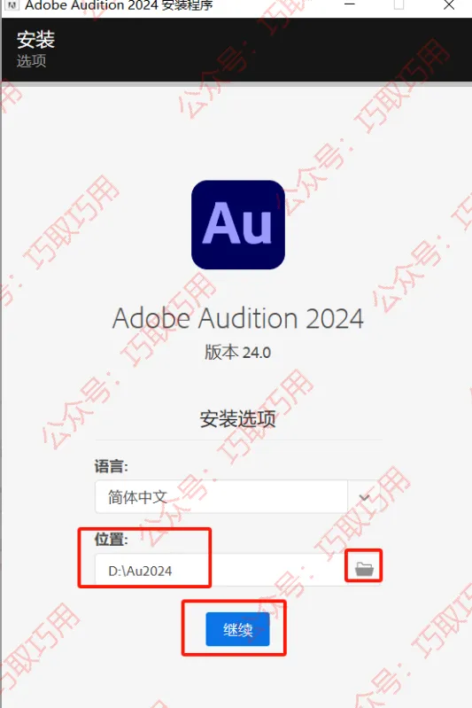 这里就不每一个版本都安装,以Au2024为安装例子 1、解压安装包,打开安装包文件夹,找到Set-up文件双击运行