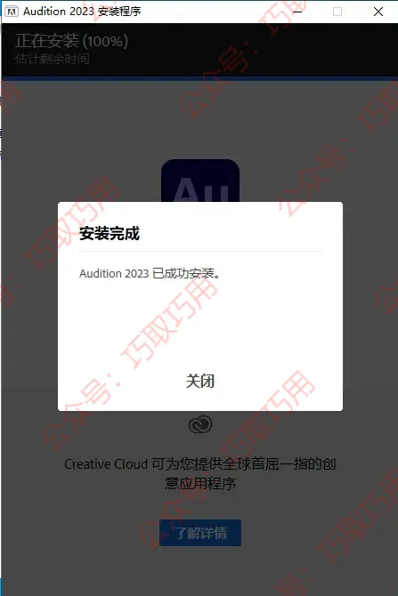 ![]() ![]() ![]() ![]() 5.Au2023安装完毕,点击关闭即可。 ![]()