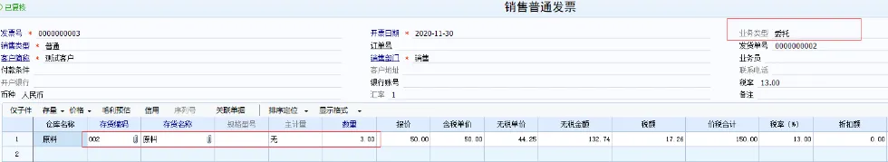 2、若委托代销成本核算方式为发票,正常单据记账中对发票记账核算。