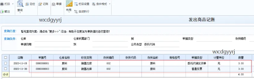 3、若委托代销成本核算方式为发出商品,在发出商品记账中对发货单或出库单、发票进行记账核算。