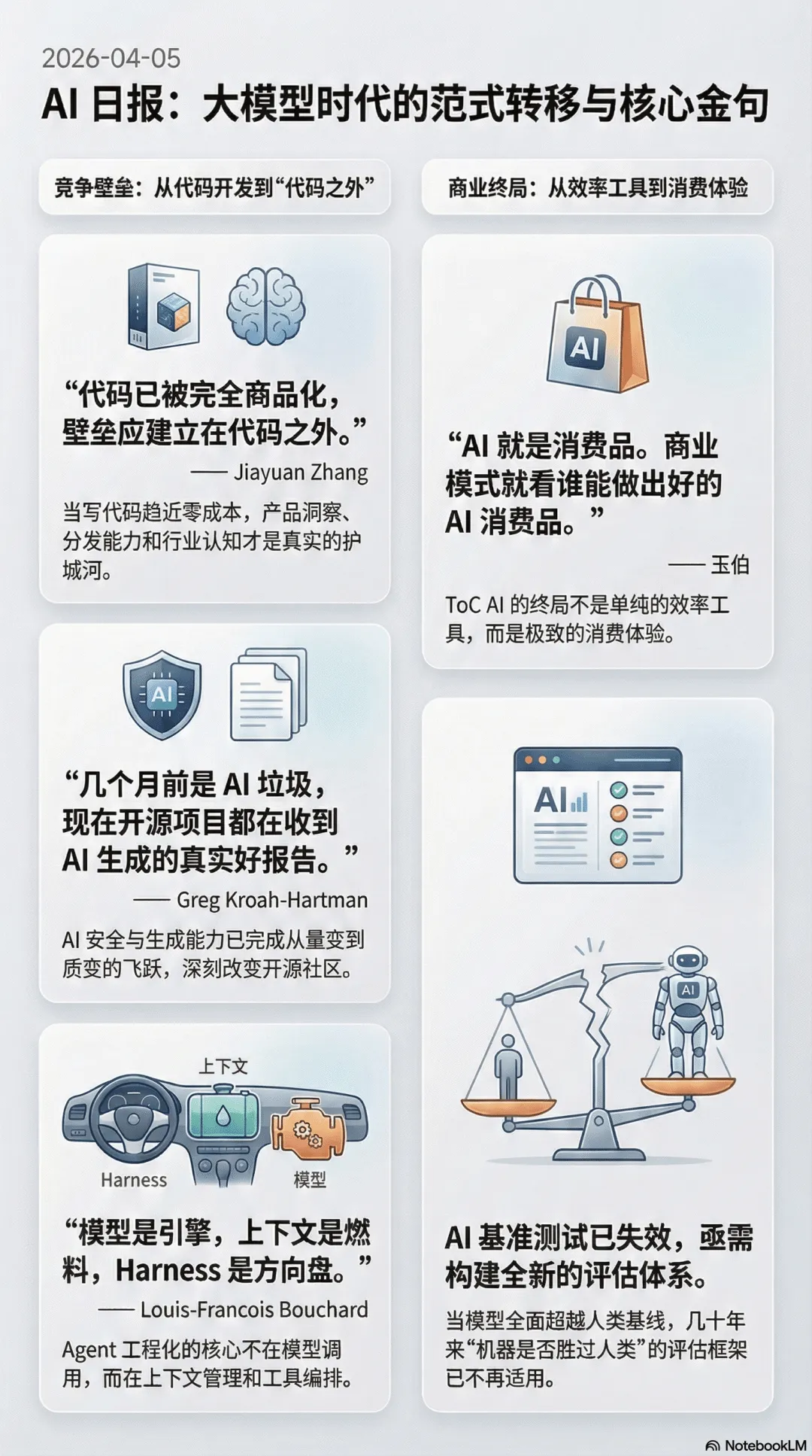 💡 核心洞察:行业共识正在形成——代码商品化、AI 消费品化,下一阶段的竞争在”代码之外”。
