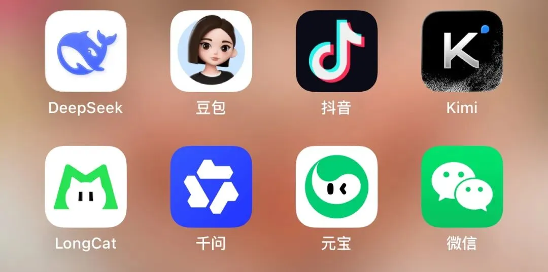 龙猫和元宝配色上完全撞衫了,甚至连设计模式都差不多。建议都修改一下!放眼望去,经过对比:千问、DS的图标就清晰、简洁许多,Kimi更是彰显科技感,真心建议美团和腾讯都能修改一下自己的App图标。
