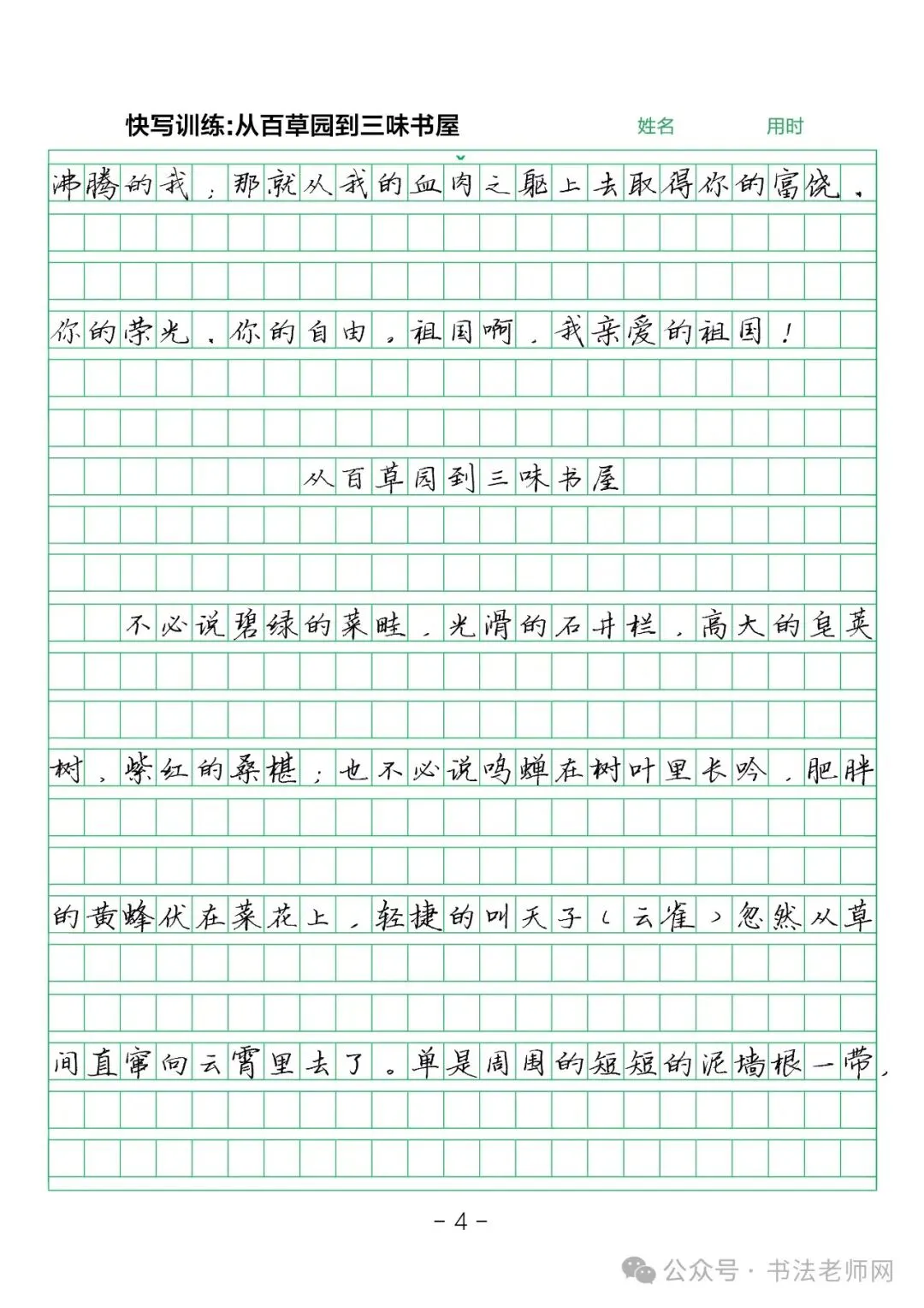 【硬笔教材】《古诗横线格及作文格练习》,高清PDF66页