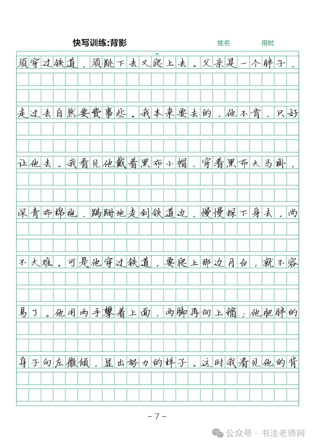 【硬笔教材】作文格行楷《初中优秀作文精选》,全册40页