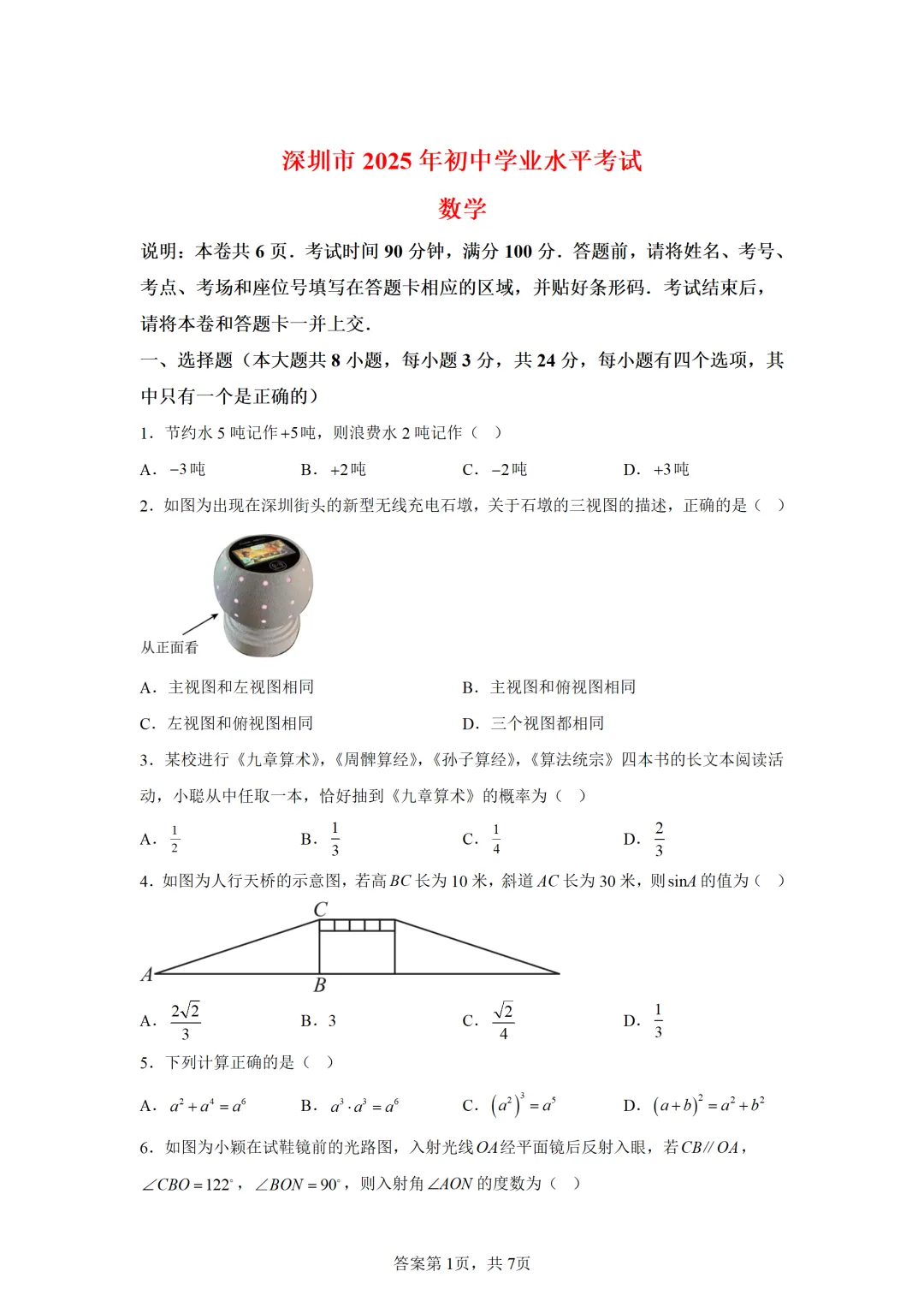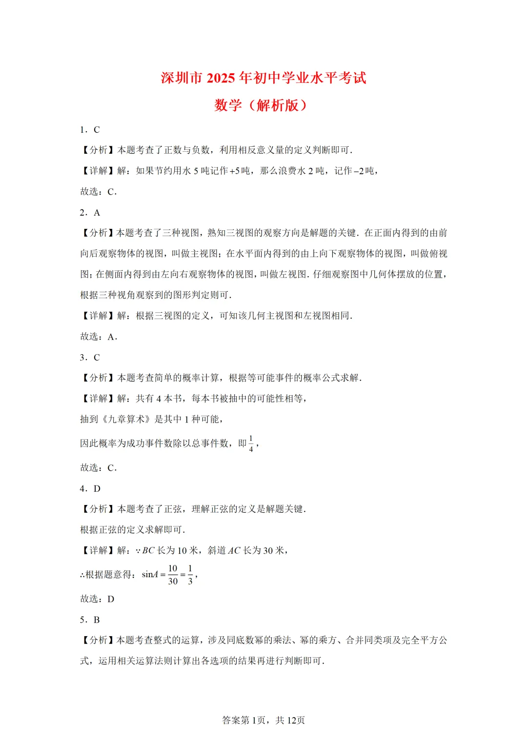 可下载:2025年中考数学【广东省深圳市卷】(含解析) 原卷版(答案在后面) 关注公众号,回复:电子版 自动领 解析版 关注公众号,回复:电子版 自动领 关注公众号,回复:电子版 自动领 关注公众号,回复:电子版 自动领 (试卷著作权归属于相关教育部门) 关注公众号,回复:电子版 自动领 关注公众号,回复:电子版 自动领