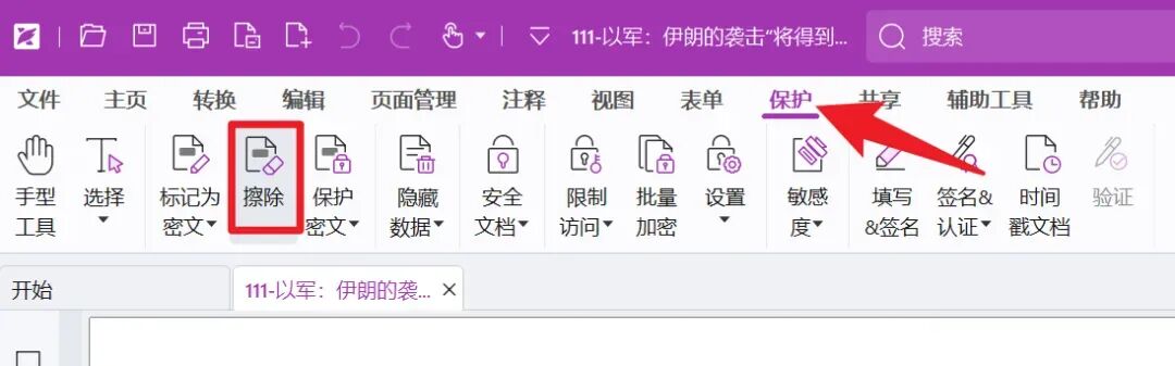 ▲ 福昕PDF保护菜单中的擦除功能入口