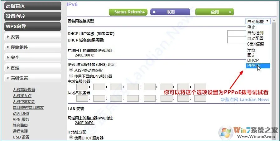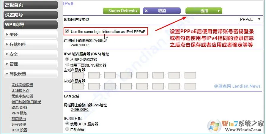注意:不是所有的路由器都支持IPv6,请看最下方IPv6常见问题解答(第三点)