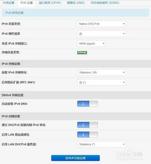 1. 登录路由器的管理界面:你应该可以看到独立的IPv6配置页面可以点开。