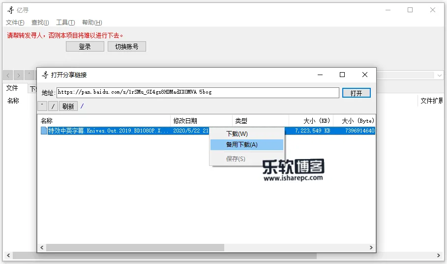 忆寻支持免登陆下载,在执行文件打开分享的百度网盘链接,即可刷新文件,使用备份下载即可高速下载文件。