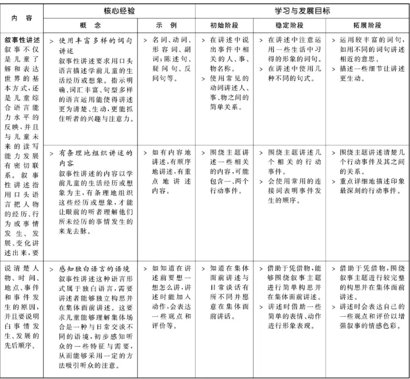 这些核心经验不仅要适合学前阶段的儿童,还要有梯度地体现说明性讲述能力发展需要具备的标准,这也是选择与确定说明性讲述核心经验的宗旨。