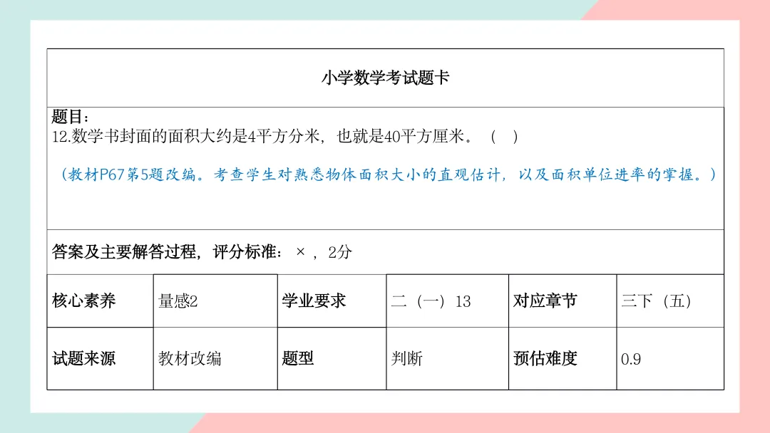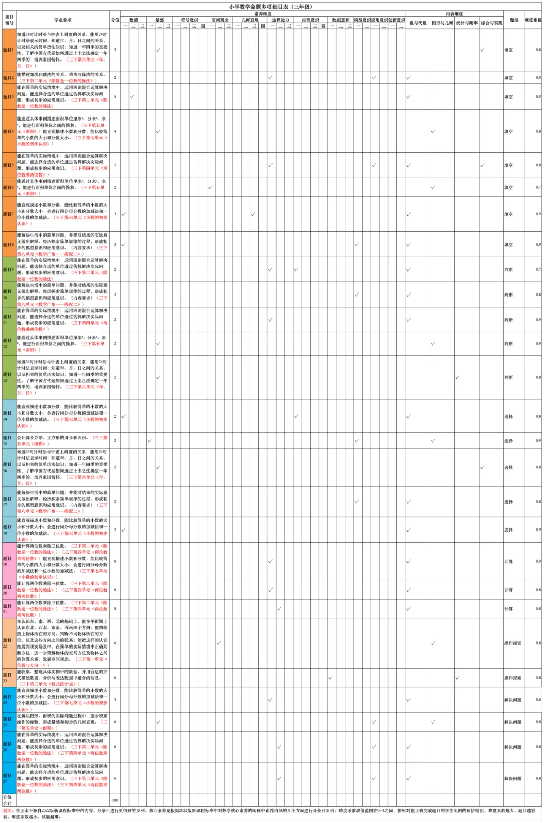 三年级数学命题说明