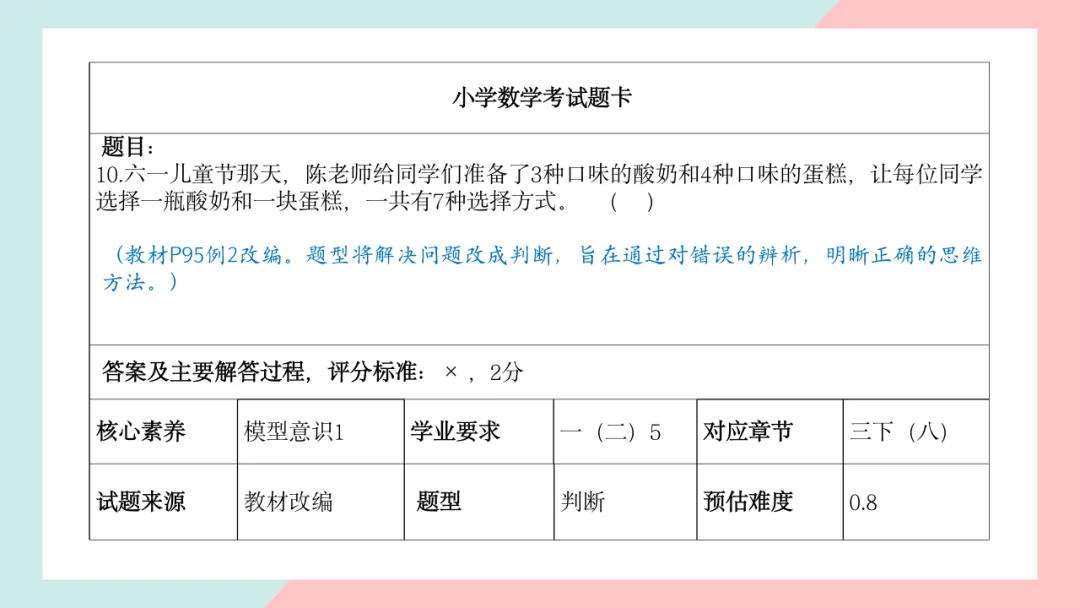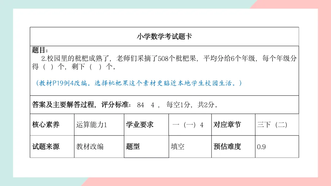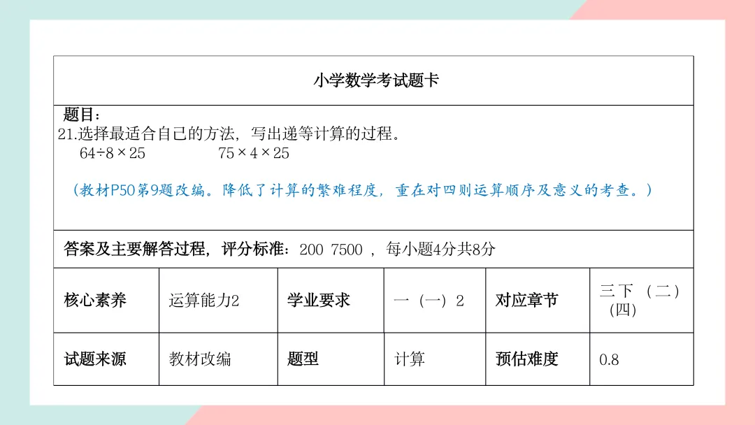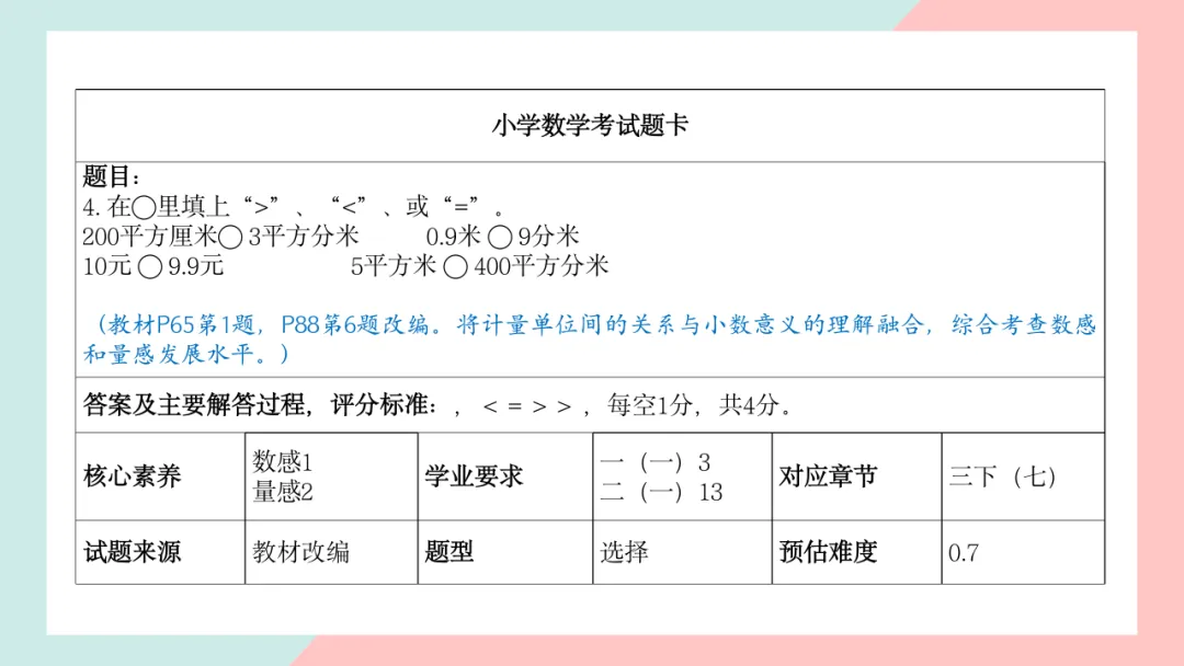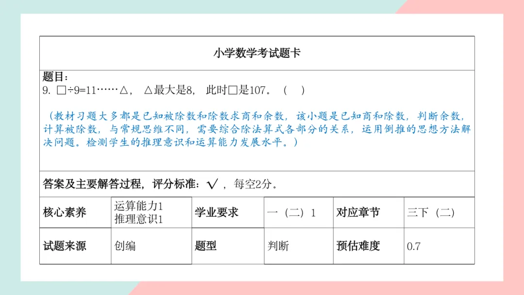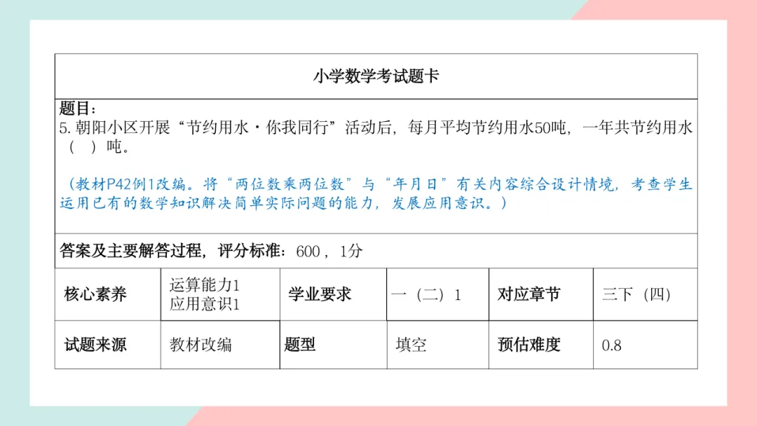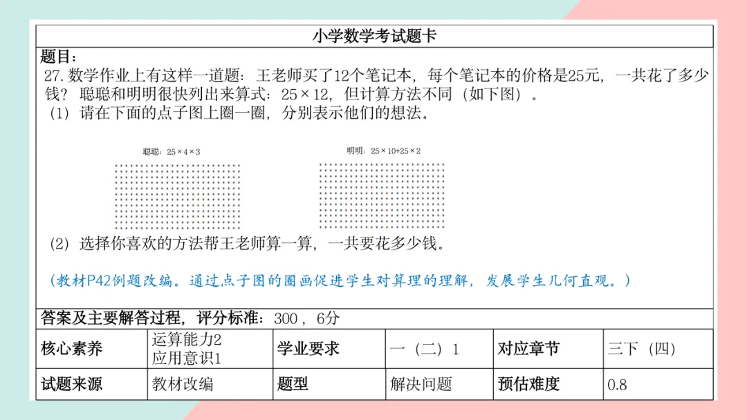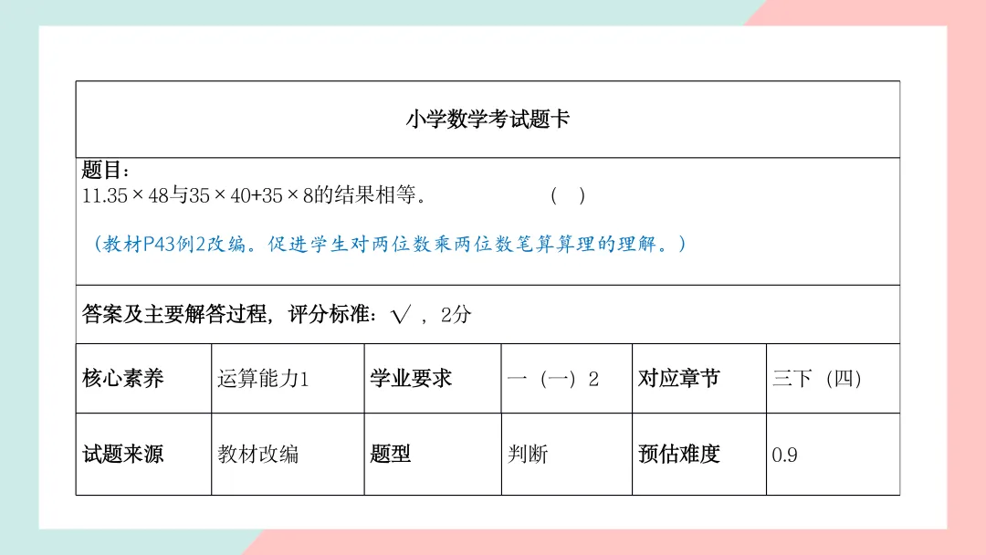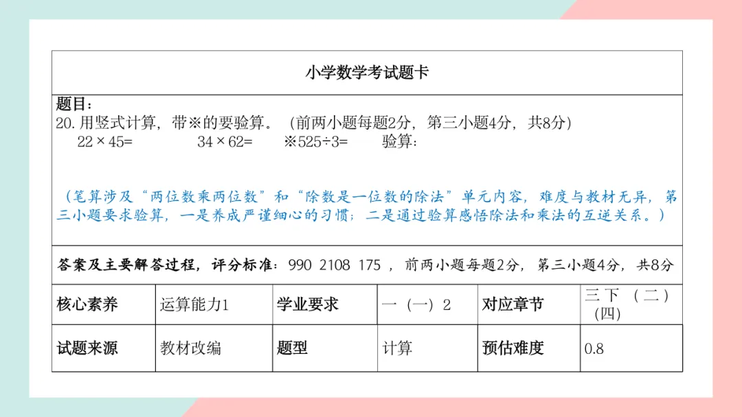 小学三年级数学命题说明