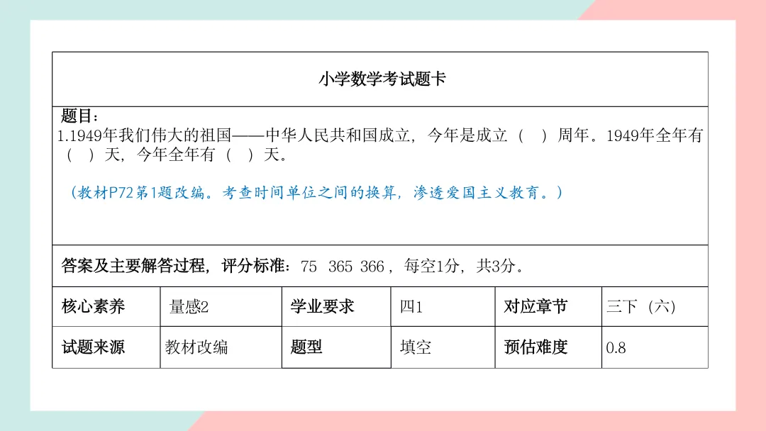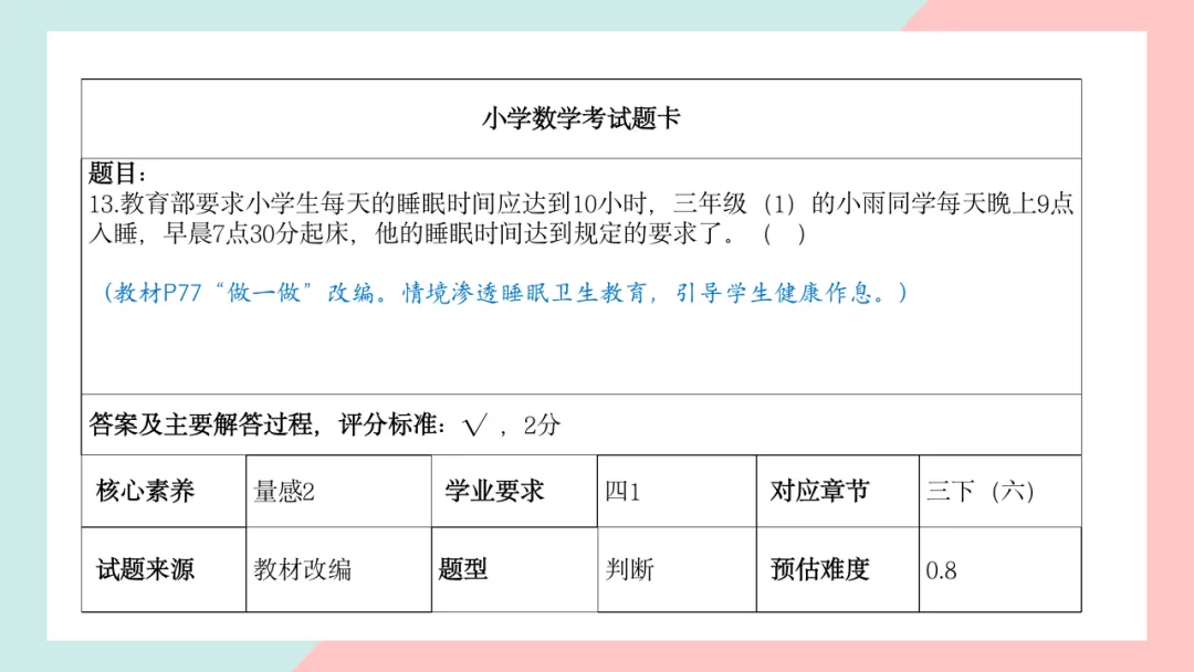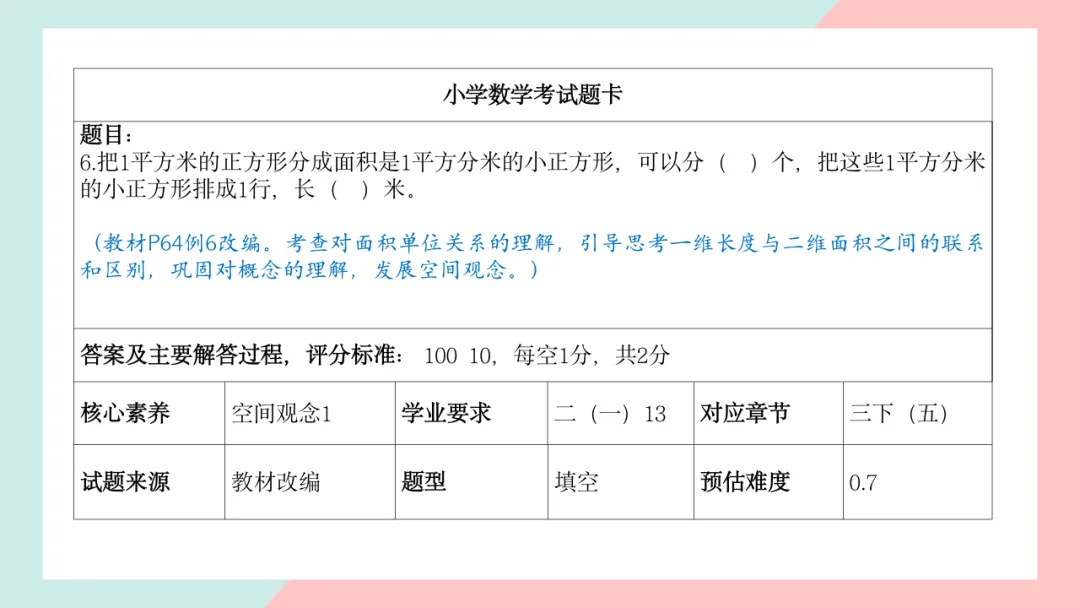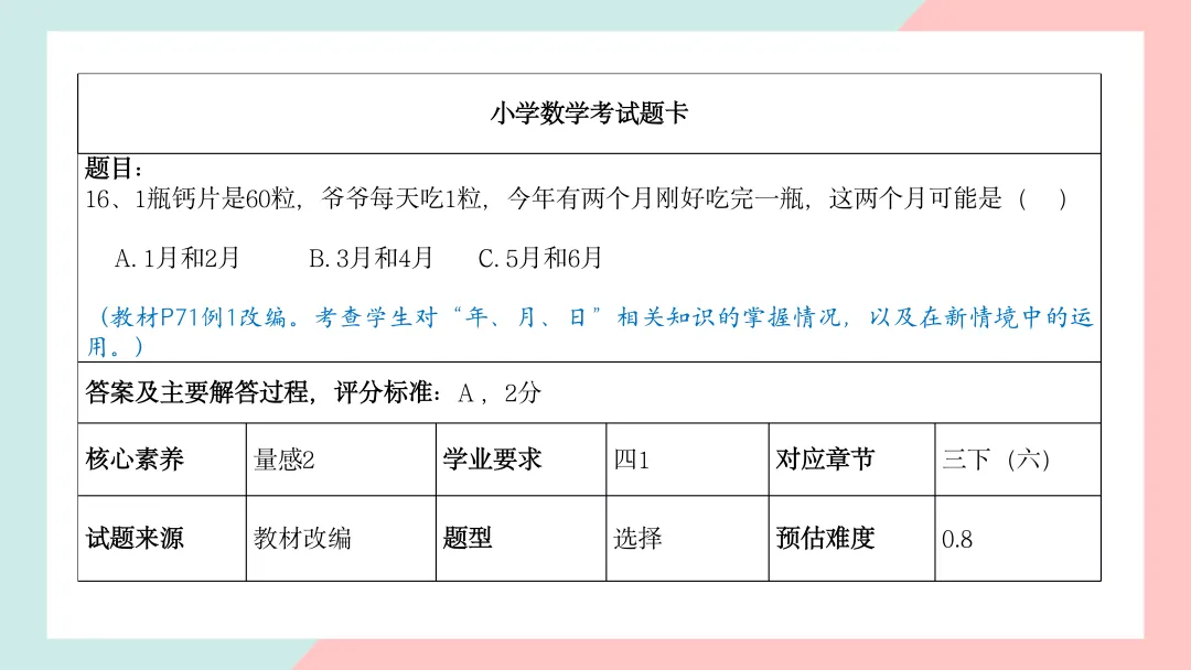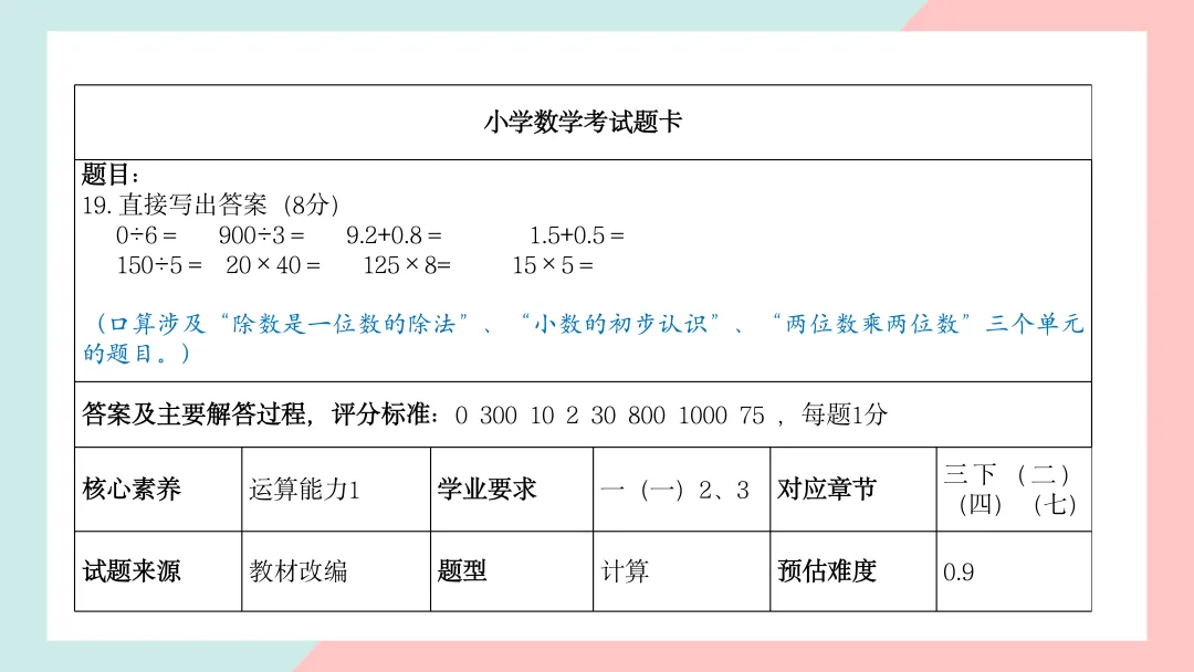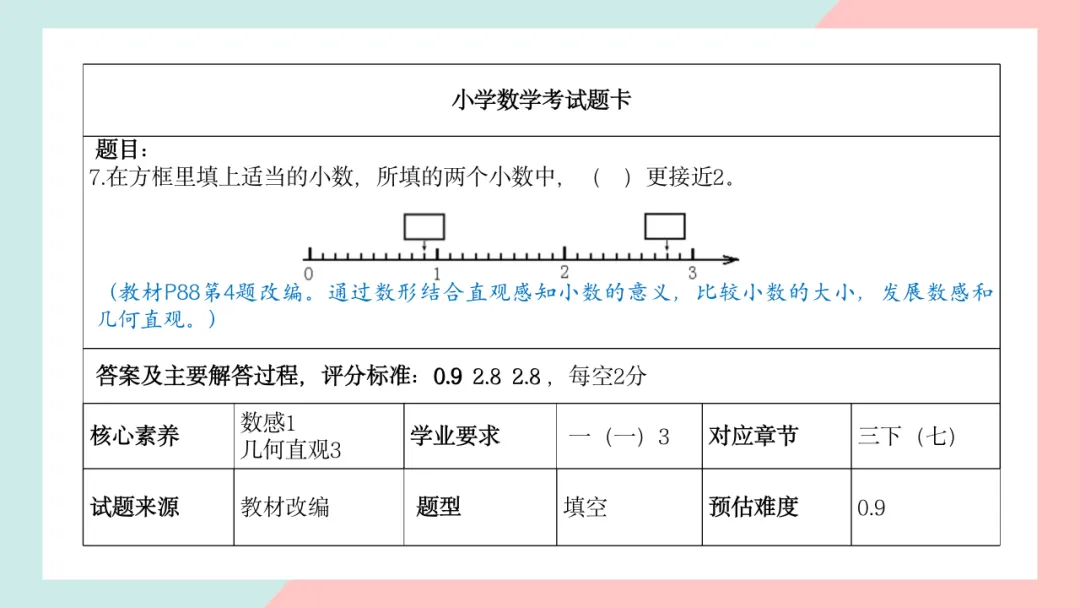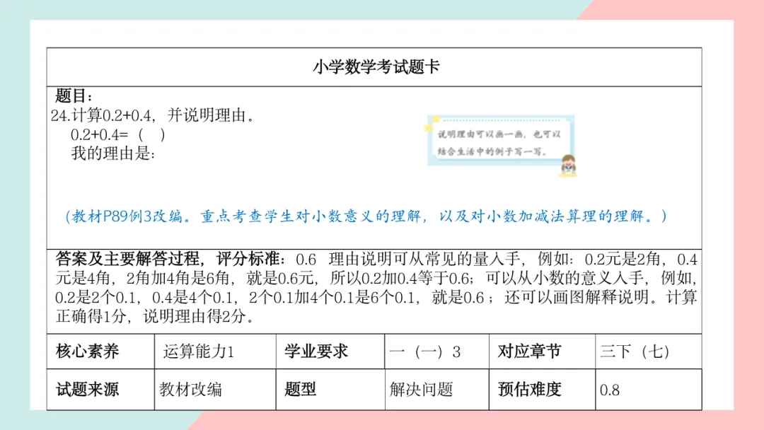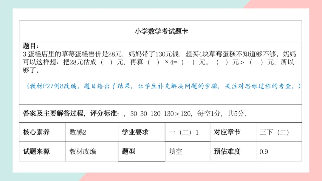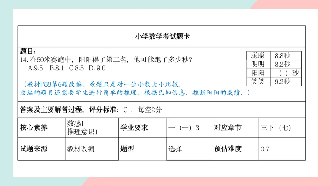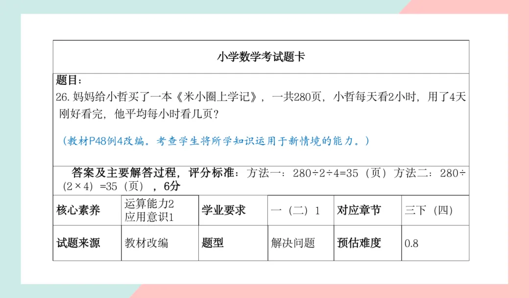 小学三年级数学命题说明