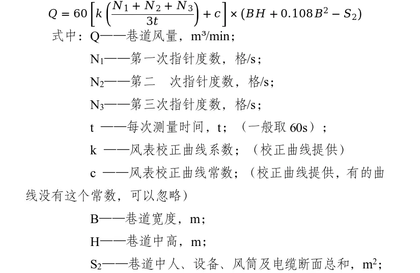 这个公式乍一看有点复杂,我估计大家不理解为什么我要把它列出来。这个公式就是我们用软件快速计算的底层逻辑,每次计算时,我们只需要测量巷道宽度、高度和风表格数,输入软件,就自动计算出巷道风量了。想要学习这项技能的,大家要认真体会公式的意义,这样在使用软件时才不会乱。