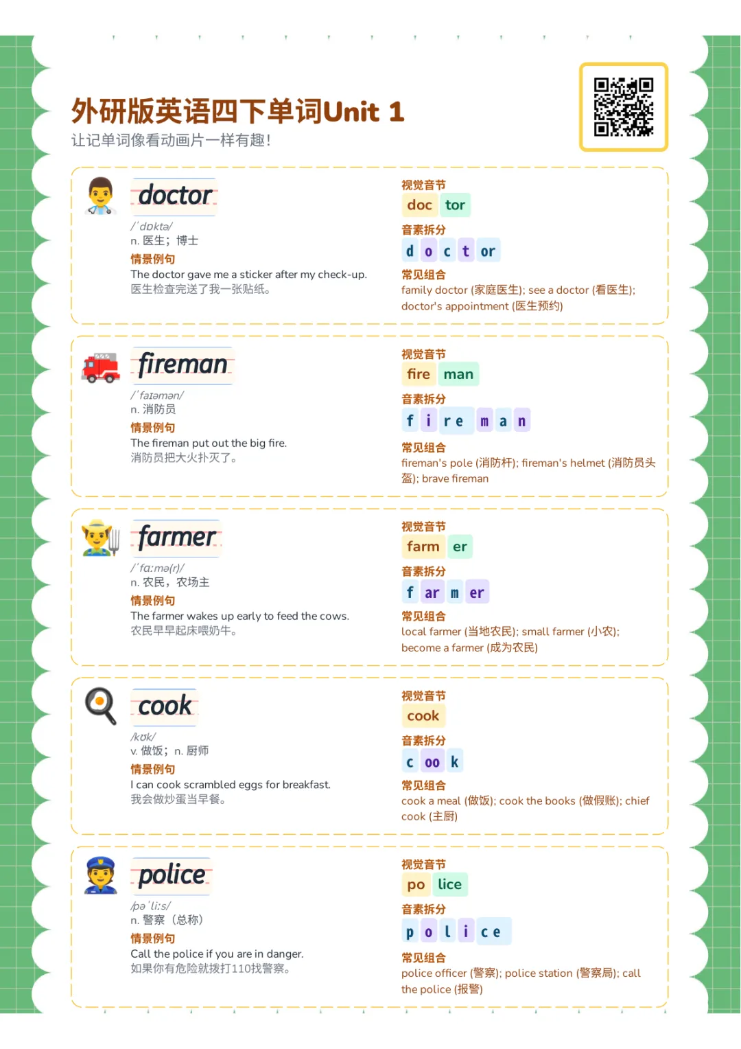 外研版英语四下单词Unit 1电子版PDF,8页,免费下载