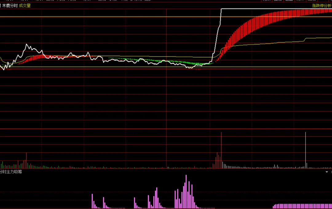 副图中出现 紫色柱状线,就是主力吸筹信号!柱子越长,代表主力吸筹力度越强、资金介入越深;