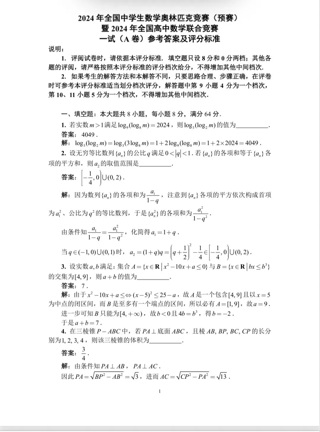 一试(预赛):2024考点集中在对数运算、等比数列、函数性质,难度对标高考压轴,侧重计算速度与准确率。