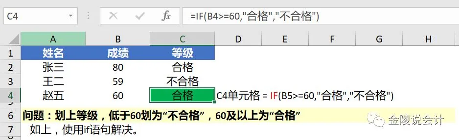 首先,if函数——if是什么?是“如果、假设”的意思,就是条件。if函数就是返回一个满足既定条件下的结果。如下所示,