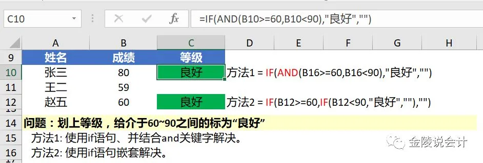当然,上述使用and或or的示例中,都提供了另一个方法,就是嵌套if语句。但细心的朋友也会发现,嵌套if语句的话,公式会稍微繁琐点,而且随着条件个数的增加会愈加繁琐。